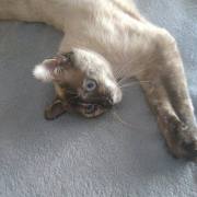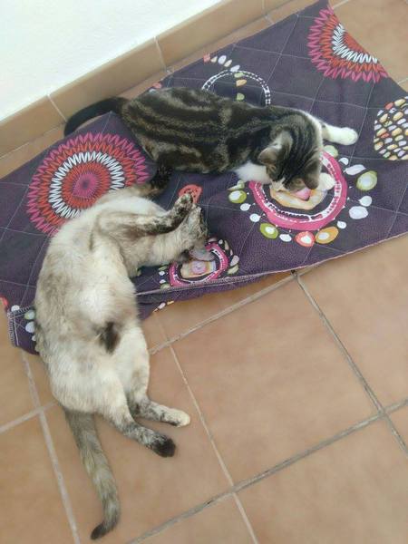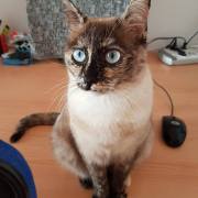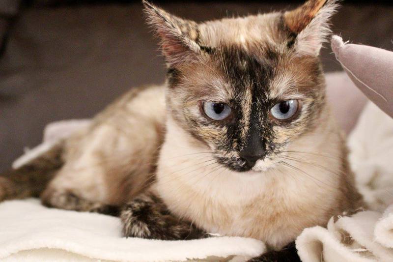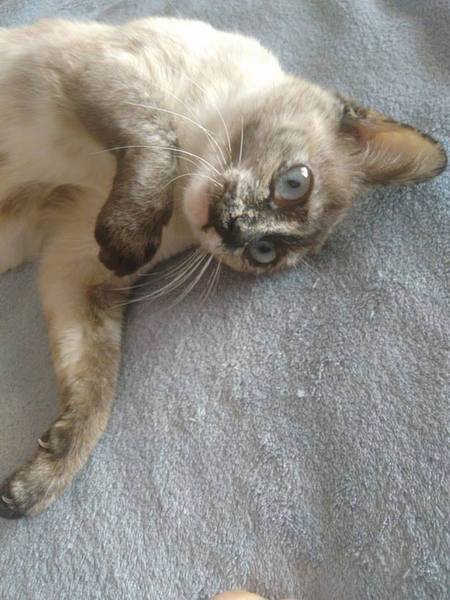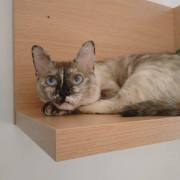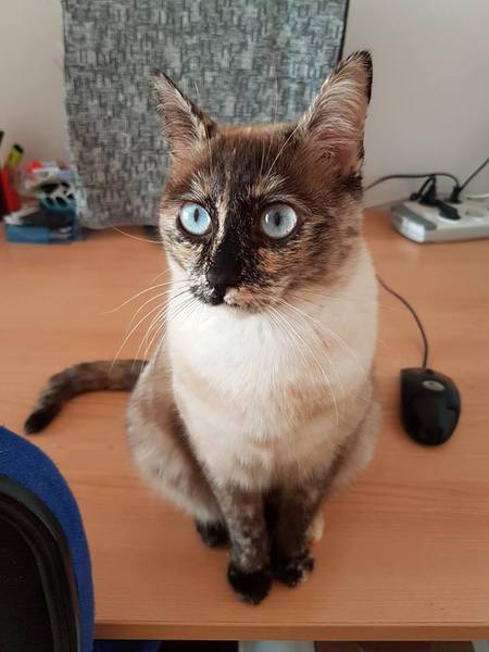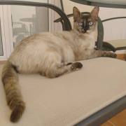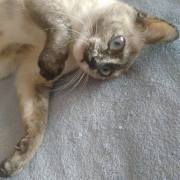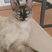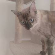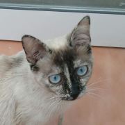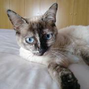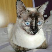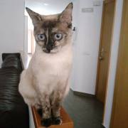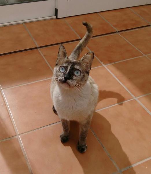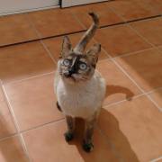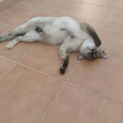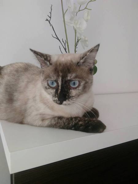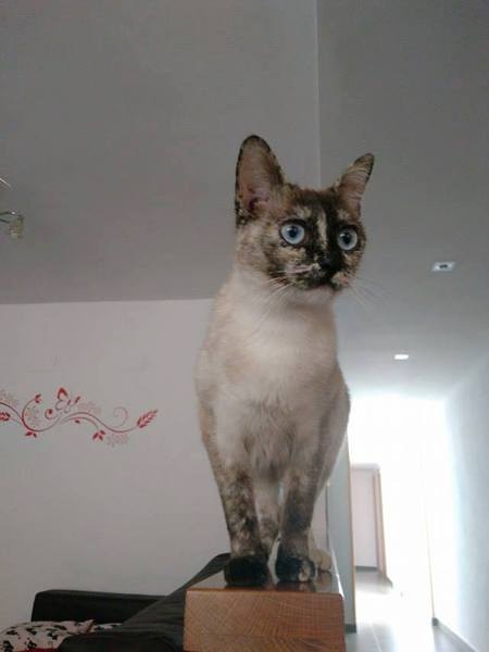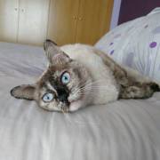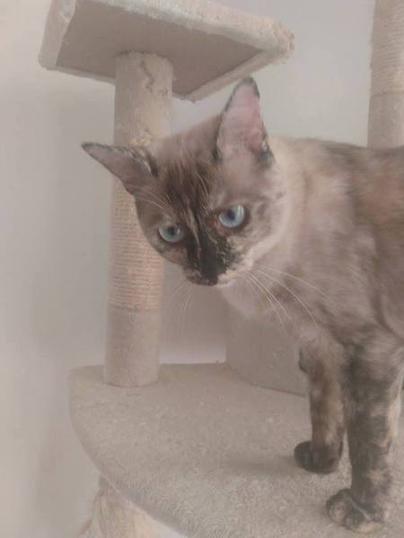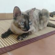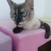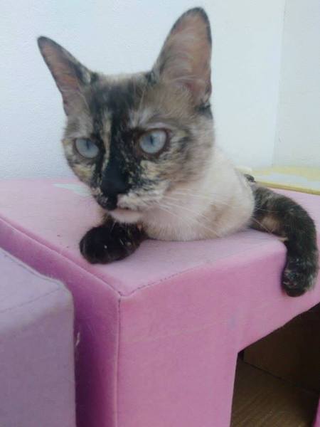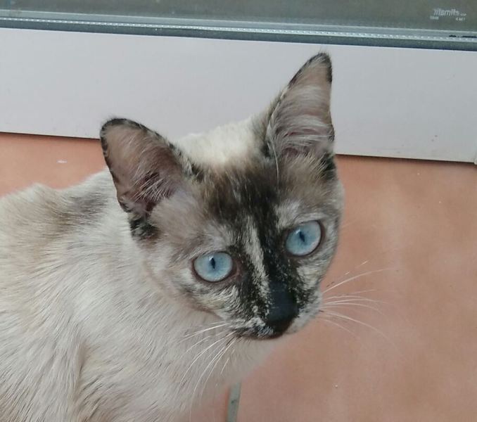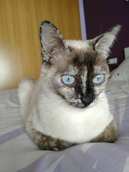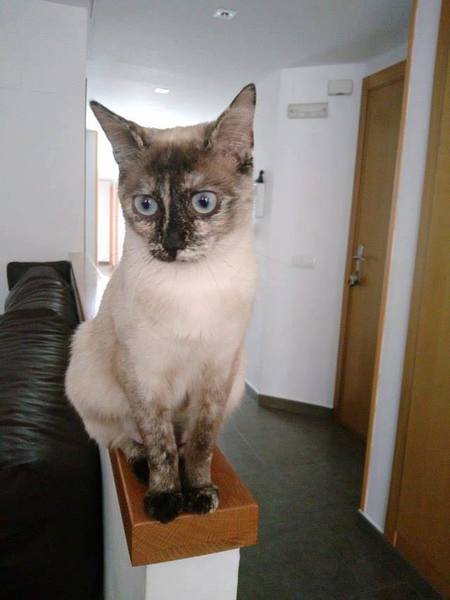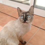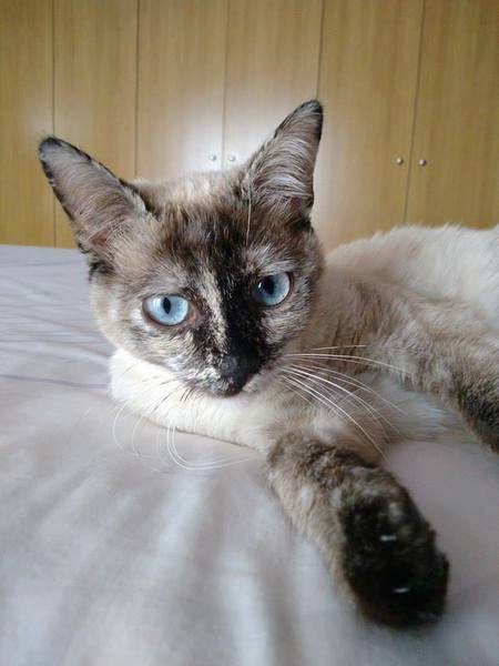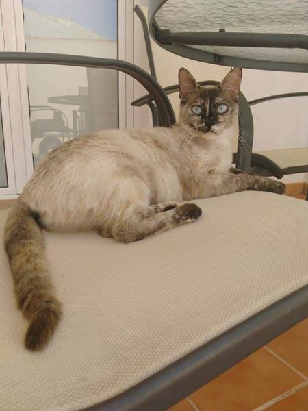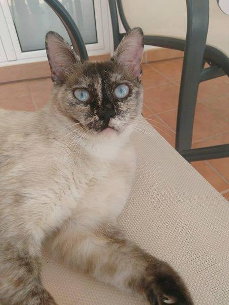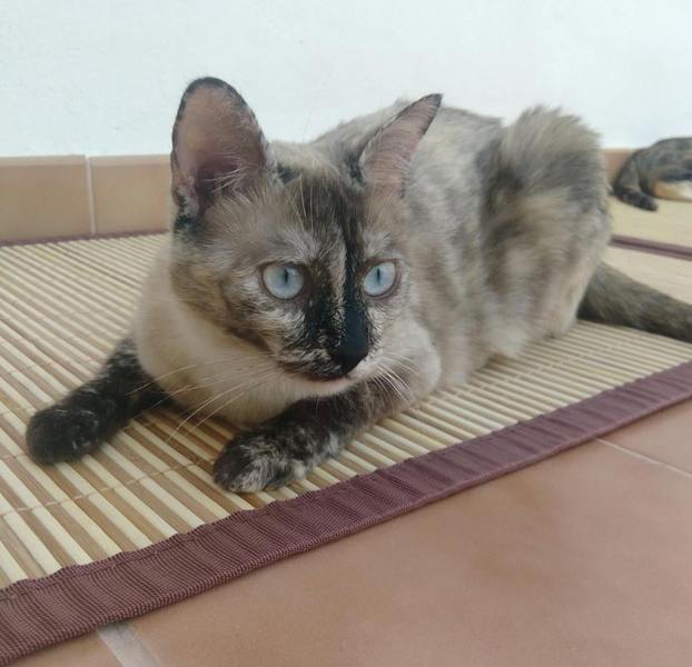 Cruce de siamés con gata carey es una belleza de gata. Abandonada cuando era una bebe de tan solo 4 meses siempre fue alimentada por una persona que la cuidaba en la calle. Cuando tenía un año