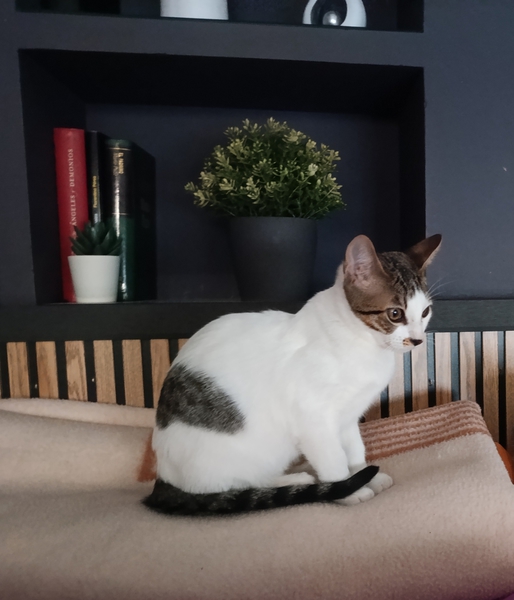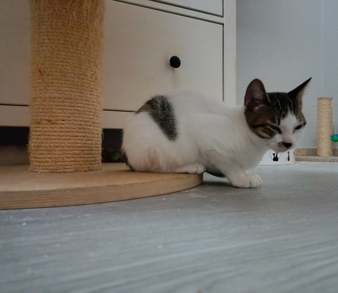 mucho y se complementan a la perfección. Cuando tiene sus momentos de descanso es un mimoso que pide y pide caricias y amorcete del bueno.