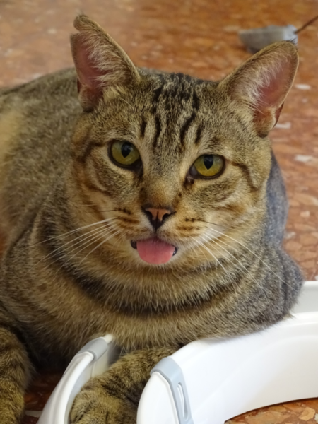 Buba perdió su dentadura, pero eso no le impide comer con normalidad pienso y comida húmeda. La única secuela es que a veces asoma la puntita de la lengua, detalle que aún le hace más gracioso y encantador.